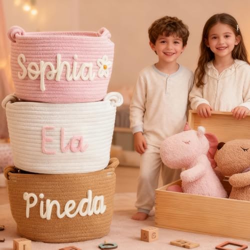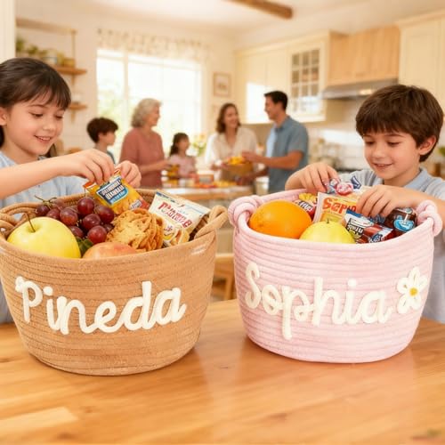 Personalised Kids Woven Storage Basket with Name, Custom Gift Basket with Name – Festive Storage Organizer for Holiday Decor & Seasonal Gifts