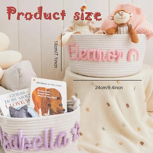 Personalized Cotton Rope Basket with name- The Perfect Festive Storage & Gift Key Features: Add a name (up to 8 letters) for a heartfelt holiday touch.3 types of accessories to choose from Size:24cm/9.4in*18cm/7.1in Construction: Durable, soft