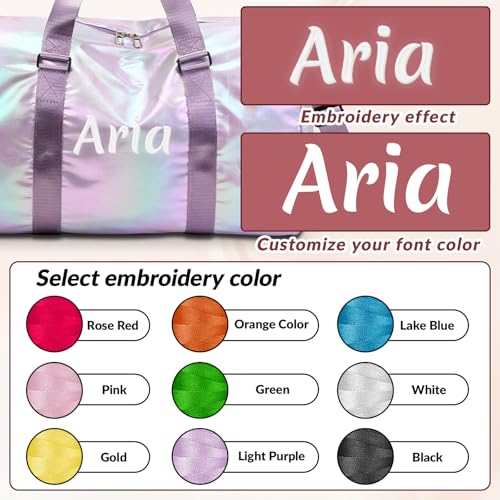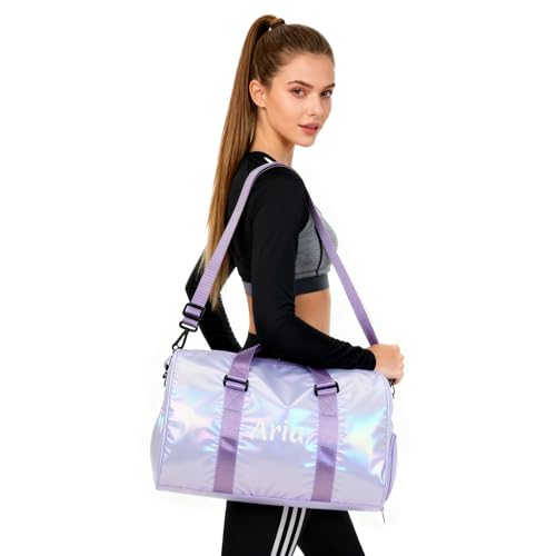 Personalized Sports Duffel Bag, Custom Embroidered Gym Bag with Name or Logo, Large Travel Weekender Overnight Bag for Women and Girls, Dance Fitness Tote for Sports or Travel (Purple)
