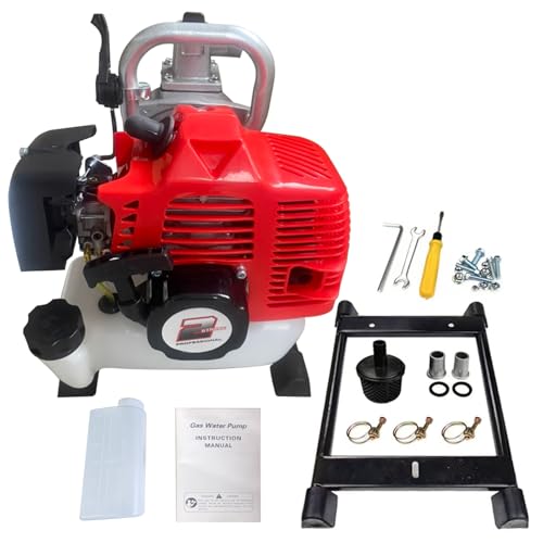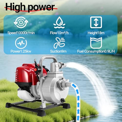 Petrol Water Pump, 50cc 2 Stroke Petrol Engine Dirty Water Pump, 1.25kw Water Garden Pump, 10000 L/h Flow Rate, 18m Head, Gasoline Water Garden Pump for Garden Lawn Irrigatio