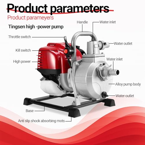 【Versatile Applications】【Versatile Applications】Suitable for farmland, garden, and lawn irrigation, this petrol pump also excels at draining sewage from basements following heavy rainfall or flooding.