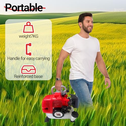 【Portable Design】Weighing just 7kg, this petrol water pump features an integrated design with a handle for effortless transport to any location, facilitating easy movement and transportation.
