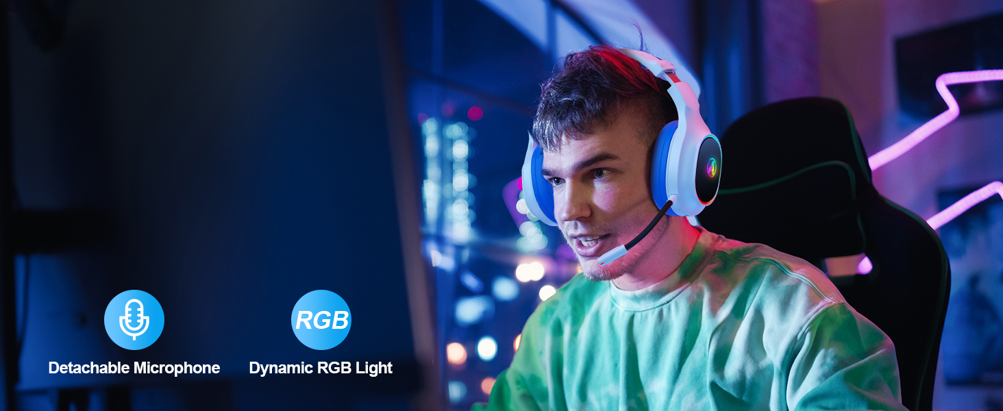 - Removable noise cancelling microphone and cool RGB lights: to improve your gaming experience, our headset has a removable noise cancelling microphone and an eye-catching RGB lighting design. You can easily disconnect the microphone when you don't need it to ensure more comfortable use. At the same time, advanced noise reduction technology effectively eliminates up to 95% of ambient noise.