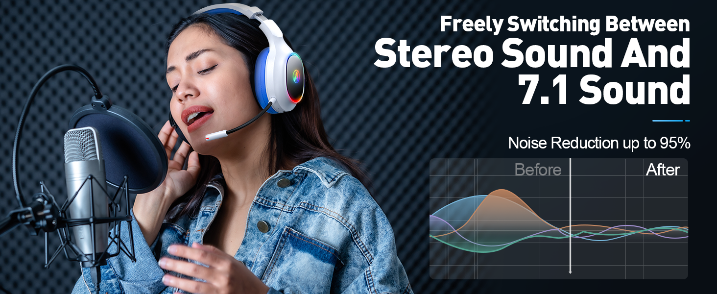- Excellent audio performance: the wireless gaming headset from Awinnasey are equipped with dynamic 50 mm drivers that can freely switch between 7.1 surround sound and classic stereo sound. Immerse yourself in the wonderful world of listening and enjoy the clarity and depth of sound every time you listen. Whether you like the world of adventure games or music, our wireless Bluetooth headphones offer you an unprecedented experience.
