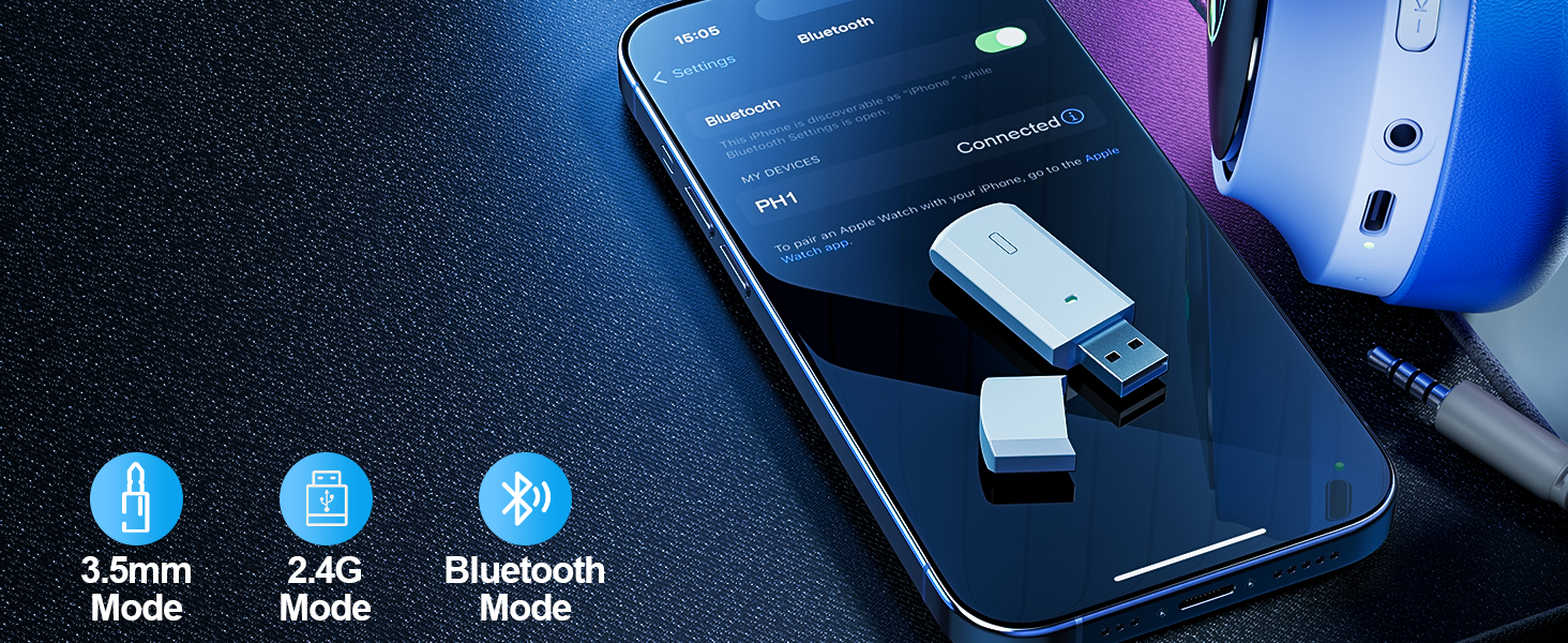 - Low latency and stable connection: Our wireless gaming headsets use advanced Bluetooth 5.4 and USB 2.4G technology to ensure a fast and stable connection, extremely low latency (≤ 20 milliseconds) and improve your gaming experience. Up to 10 meters cover Bluetooth. You are no longer restricted by cables and enjoy the freedom of wireless audio.