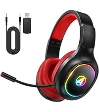 PH3 Wireless Gaming Headset for PS5, PS4, Switch, PC, Mac, Bluetooth Headphones with Removable Microphone, Lightweight Bluetooth Headset with RGB Light, 50 Hours Battery, Black Red