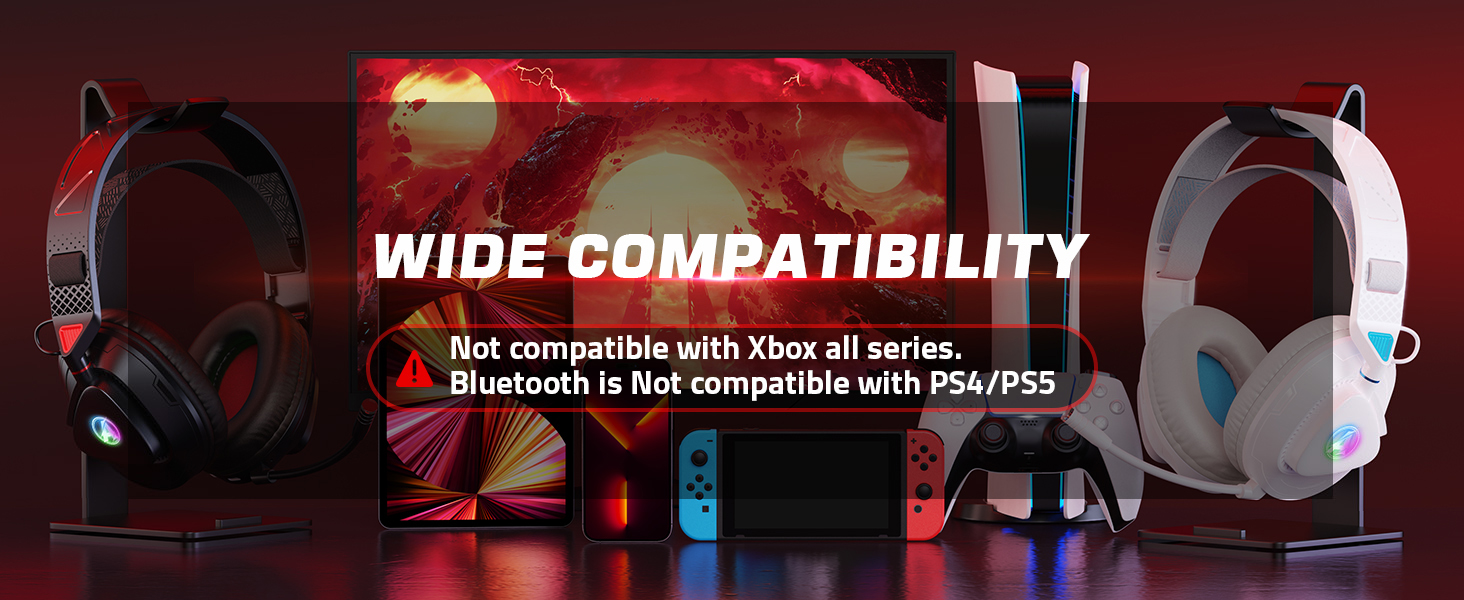 - Wide compatibility, larger battery capacity: the 2.4 GHz dongle mode of this headset is compatible with PS5, PC, PS4 and Mac, and the Bluetooth mode is compatible with smart devices such as mobile phones, tablets and iPads. It is also equipped with a 1000mAh battery that can be used continuously for up to 50 hours. ️Not compatible with XBOX. The Bluetooth mode is not compatible with PS4, PS5. ️ When connected to Switch, the microphone is not available.
