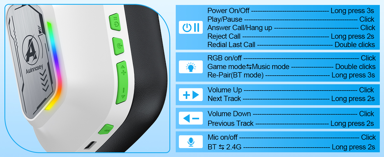 - Professional audio performance: the Awinnasey wireless gaming headset is equipped with a dynamic 50 mm driver that can freely switch between game mode and music mode. Immerse yourself in a wonderful world of sound and enjoy the clarity and depth of the sound every time you listen. Whether you like adventure games or the world of music, our wireless Bluetooth headset offers you an unparalleled experience.