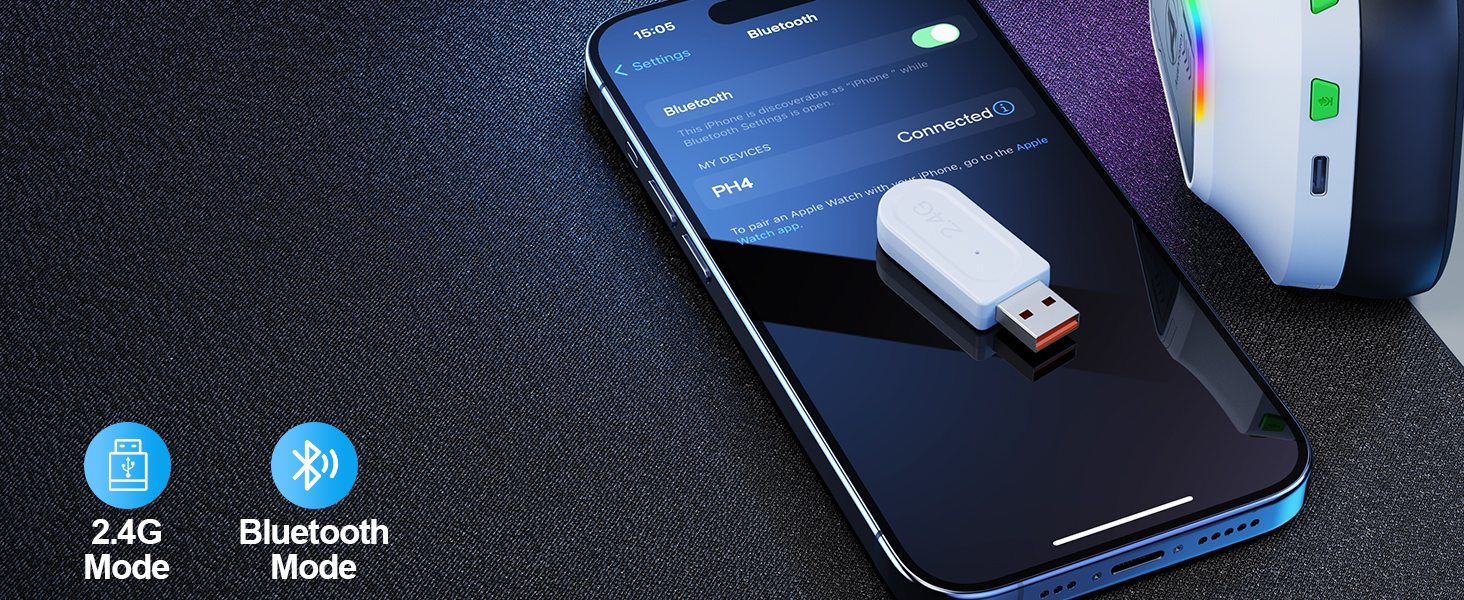 - Comprehensive compatibility: the 2.4 GHz mode of the headset is compatible with PS5, PS4, PC, and Mac, and the Bluetooth mode is compatible with smart devices such as mobile phones, tablets. ️Not compatible with XBOX. The Bluetooth mode is not compatible with PS4, PS5. ️ The microphone of the headset is not available for Switch.