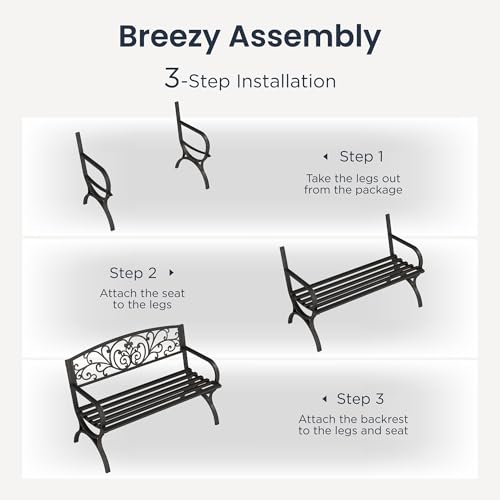 Easy to Assemble: Setting up your new garden seat is a breeze! Each metal garden bench comes with a detailed manual and all necessary accessories, including screws, nuts, and washers. One person can assemble it in just 15 minutes