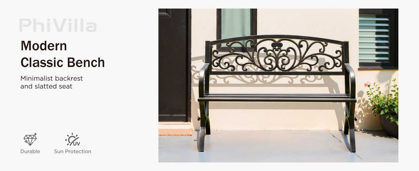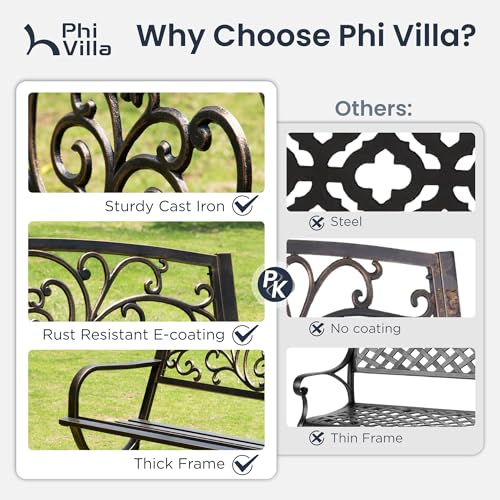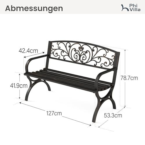 PHI VILLA Metal Garden Bench Cast Iron Backrest Steel Frame