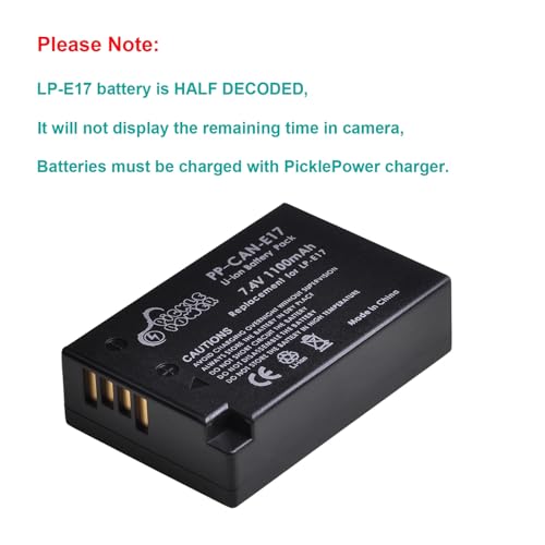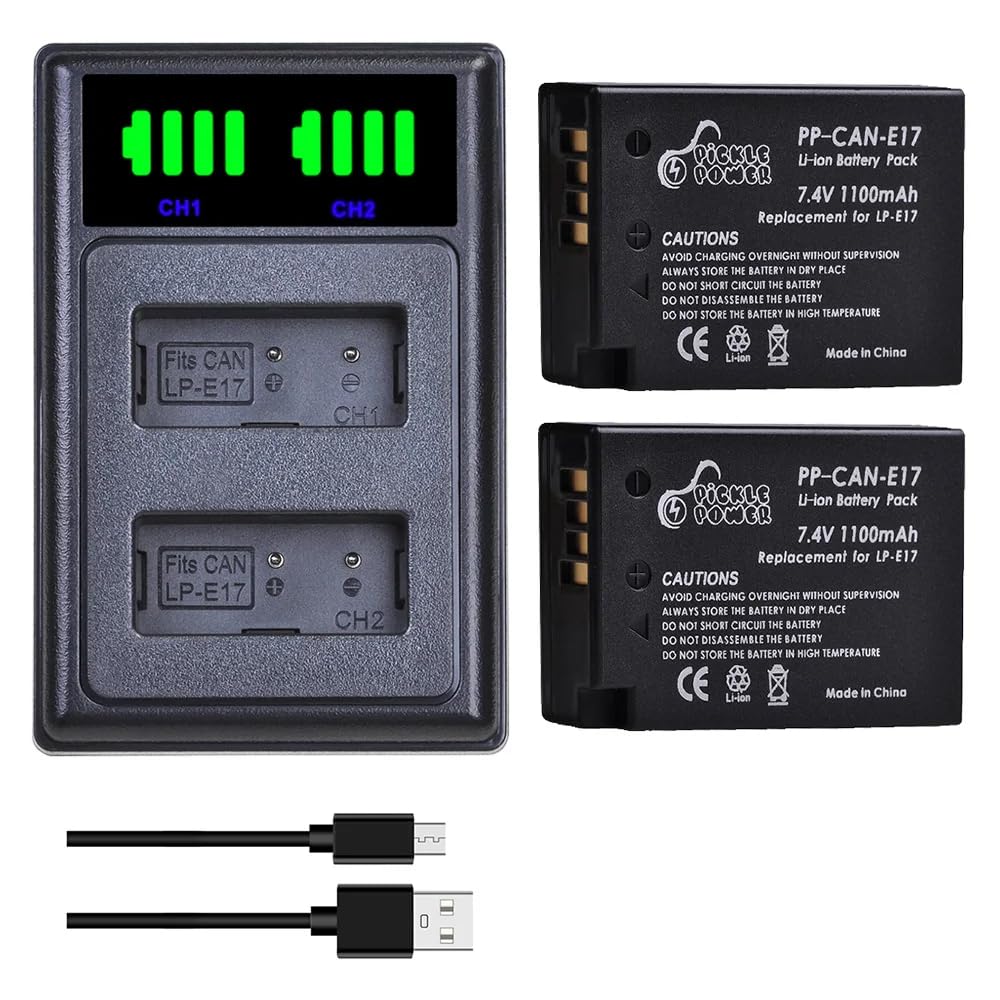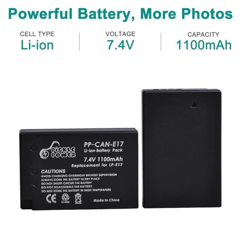 Pickle Power 2-Pack LP-E17 Battery and Type-c Charger for Canon EOS R50 250D 750D 77D 850D 200D R100 R10 R8 RP 760D 8000D EOS M3 M5 M6 Rebel T6i, T6s, Kiss X8i