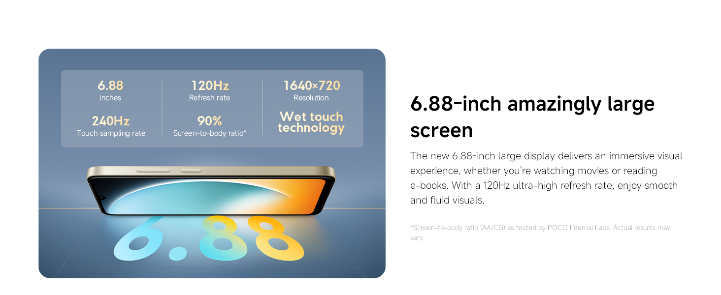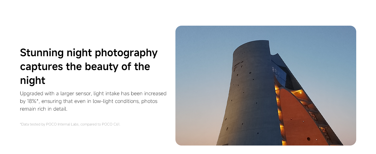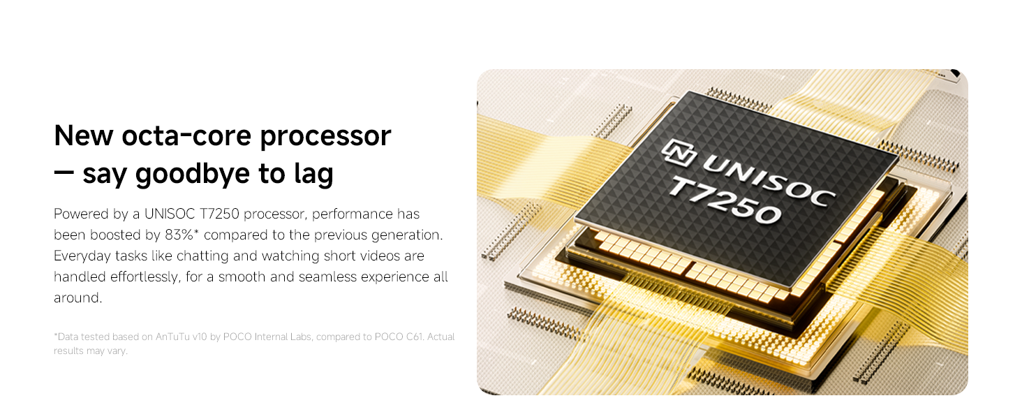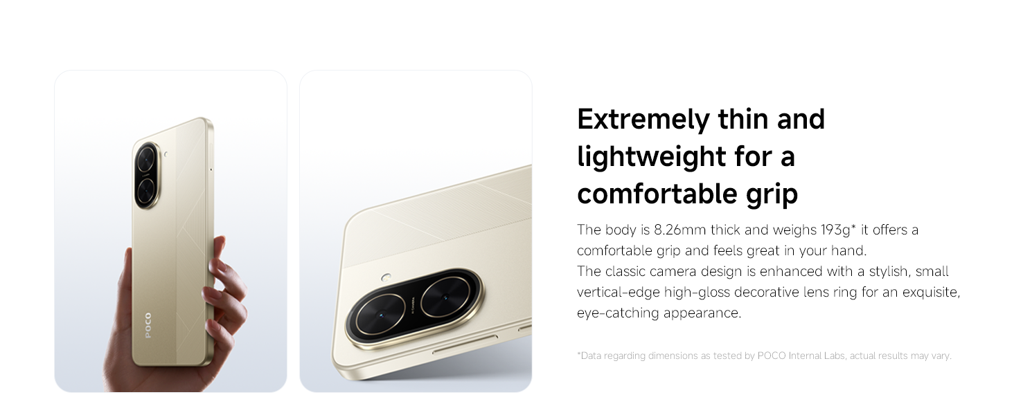 - 【Trendy premium design】The POCO C71 features a fresh, trendy design with a simple yet distinctive personality. The classic style and exceptional craftsmanship deliver a flagship-quality feel.