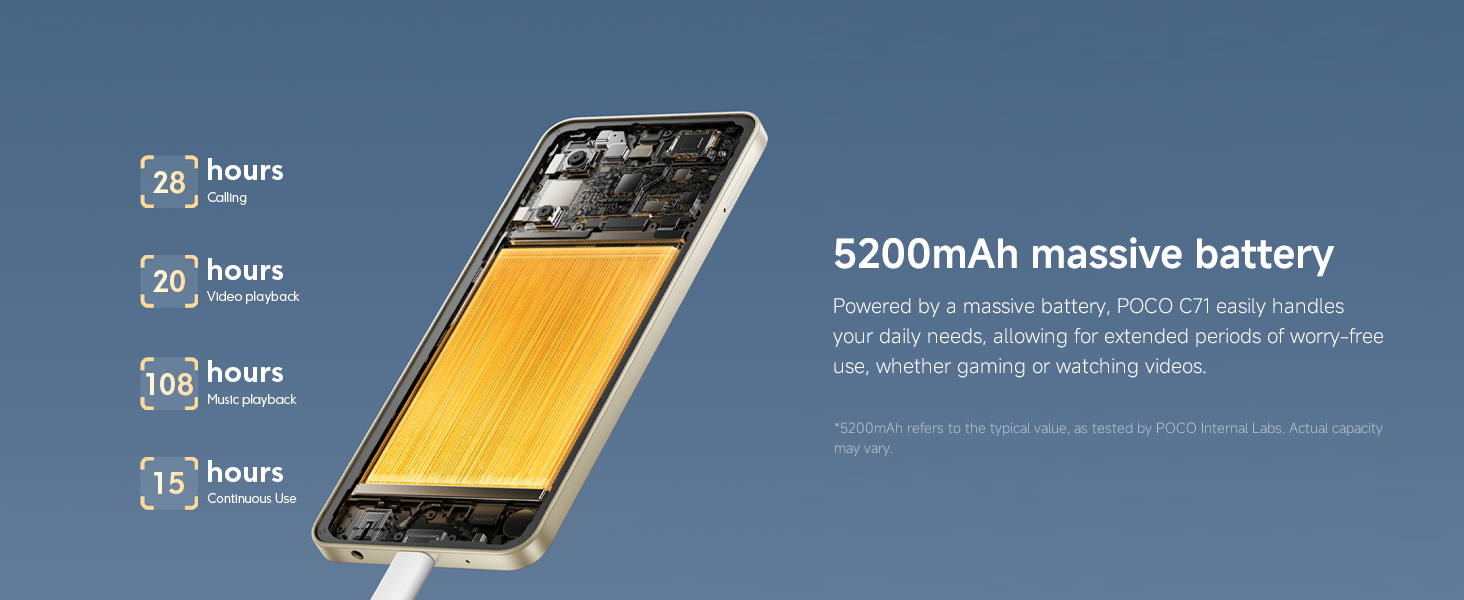 - 【Long-lasting battery life】Powered by a massive battery, POCO C71 easily handles your daily needs, allowing for extended periods of worry-free use, whether gaming or watching videos.