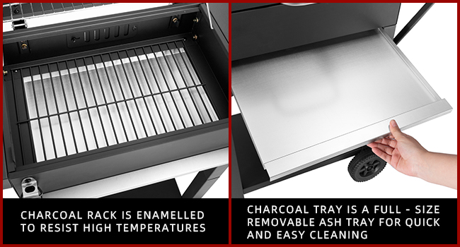 - QUICK CLEANING: The large barbecue, removable ash collector makes cleanup quick and easy. Spend more time enjoying your BBQ and less time on post-cooking maintenance