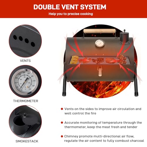 【Portable and Compact Design】This charcoal grill features a lightweight design with a grilling area of 13.5" x 8.5", suited for 3-5 people use, making it perfect for camping, picnic, backyard party, or outdoor gathering. Easy to carry and set up, allowing you to enjoy grilling anytime, anywhere.