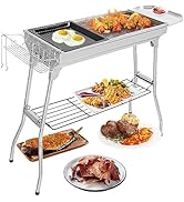 【Versatile Outdoor Use】Ideal for family barbecues, camping trips, picnic outings, or backyard parties. Compact yet practical, it allows you to grill multiple types of food at the same time, bringing enjoyable and delicious moments to you, your family, and friends.