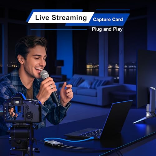 【1080p 60Hz Capture Quality】Enjoy smooth, high-quality recording with 1080p at 60fps capture via USB 3.0—perfect for streaming gameplay, tutorials, or video conferences. Compatible with OBS Studio and other UVC/UAC-compliant applications (not included)