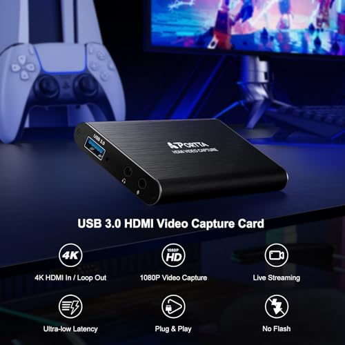 PORTTA HDMI Video Capture Card, Stream and Record in 1080P60 with Ultra-Low Latency, 4K HDMI in/Loop Out, USB 3.0 to PC Compatible with Camcorder/PS4/PS5/Xbox/Nintendo Switch 2/OBS