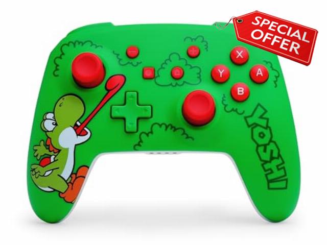 PowerA Wireless Controller for Nintendo Switch – Hungry Yoshi, Switch Lite/Switch-OLED Model, Nintendo Switch 2, AA Battery Powered (Battery Included), Bluetooth, Motion Controls, Officially Licensed