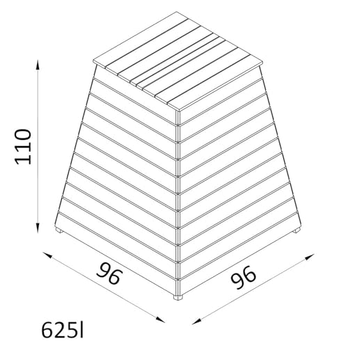 This beautiful wooden composter in a beehive style will look great in any garden. Perfect for your kitchen scraps or garden cuttings, it can hold up to 625 litres of compost made from your household waste, significantly reducing your landfill footprint. Made from pressure-treated wood, the wooden slats are positioned to allow enough air to penetrate and circulate in the composter, which is essential to making good compost. A hinged lid allows easy access to add scraps, and the bottom flap allows easy access to the final result. Height: 110cm Width: 96cm Depth: 96cm Volume: 625 litres