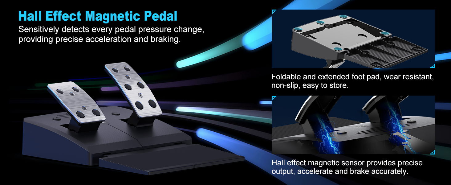 - HALL MAGNETIC PEDALS: Non-slip pedal system with dual metal plates and Hall sensors for precise control, featuring a foldable footrest for convenient storage