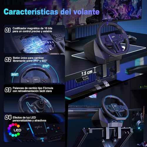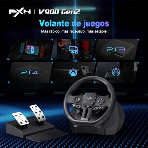 PXN V900 Gen2 Steering Wheel and Pedals, 270°/900° Racing Wheel with Vibration Feedback, Hall Effect Pedals – Gaming Steering Wheel for PC Windows, PS4, PS3, Xbox, and Switch