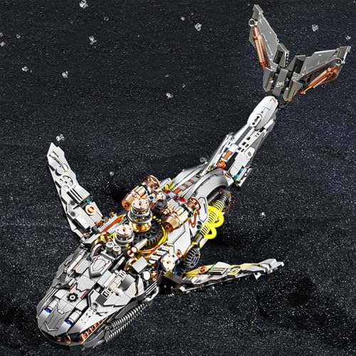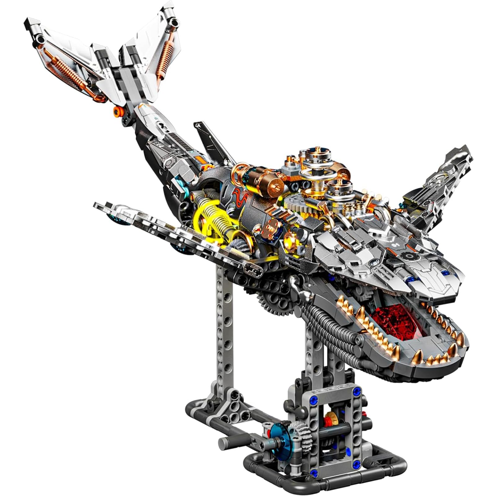 Mech Whale Building Kit with LED Lights, Compatible with Lego Shark, Creative Ocean Building Block Toys, Interactive Design, Home/Office Decor, Gift for Adult& Kids Age 12+