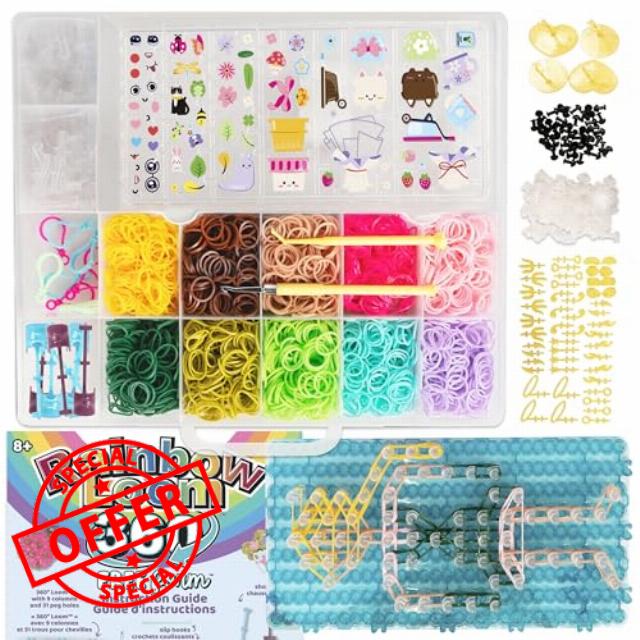 - This package includes: 1 RL 360, 3 hooks, 2800 rubber bands, accessories frame, 100 accessories and a portable storage case. Everything is filled with hours of fun, endless combinations and creative exploration on the go!