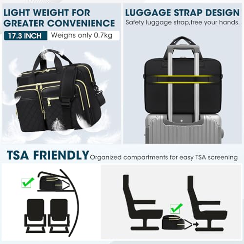 - 【Size Compatibility – Premium Quality】This laptop bag for Women comes in two dimensions. The 17.3-inch model measures 42cm × 13cm × 32cm and weighs 0.7kg; the 15.6-inch model measures 40cm × 13cm × 30cm and weighs 0.66kg. Compatible with most laptops, its lightweight design ensures it won't weigh you down.