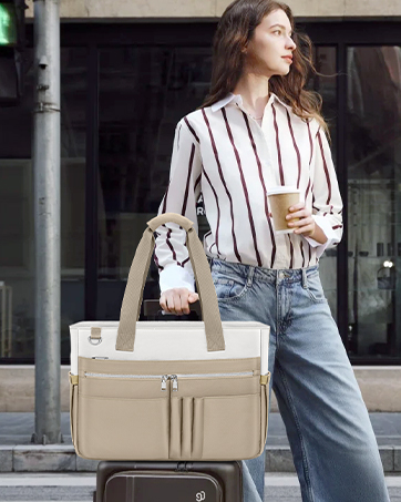 - Compartmentalized & Insulated Design: This laptop bag easily holds a 15.6-inch laptop, files, and books, while two built-in insulated pockets keep iced drinks cool or hot beverages warm. Both stylish and practical, this lightweight nylon tote bag combines functionality and modern design for all-day carry.