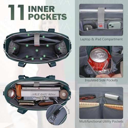 RAINSMORE Laptop Tote Bags for Women 15.6 Inch Teacher Bag Large Utility Nurse Bag Water Resistant Briefcase with Insulated Pockets for Work Office Travel University Dark Gree