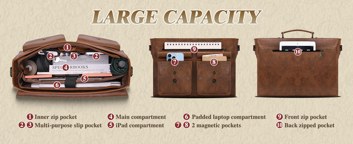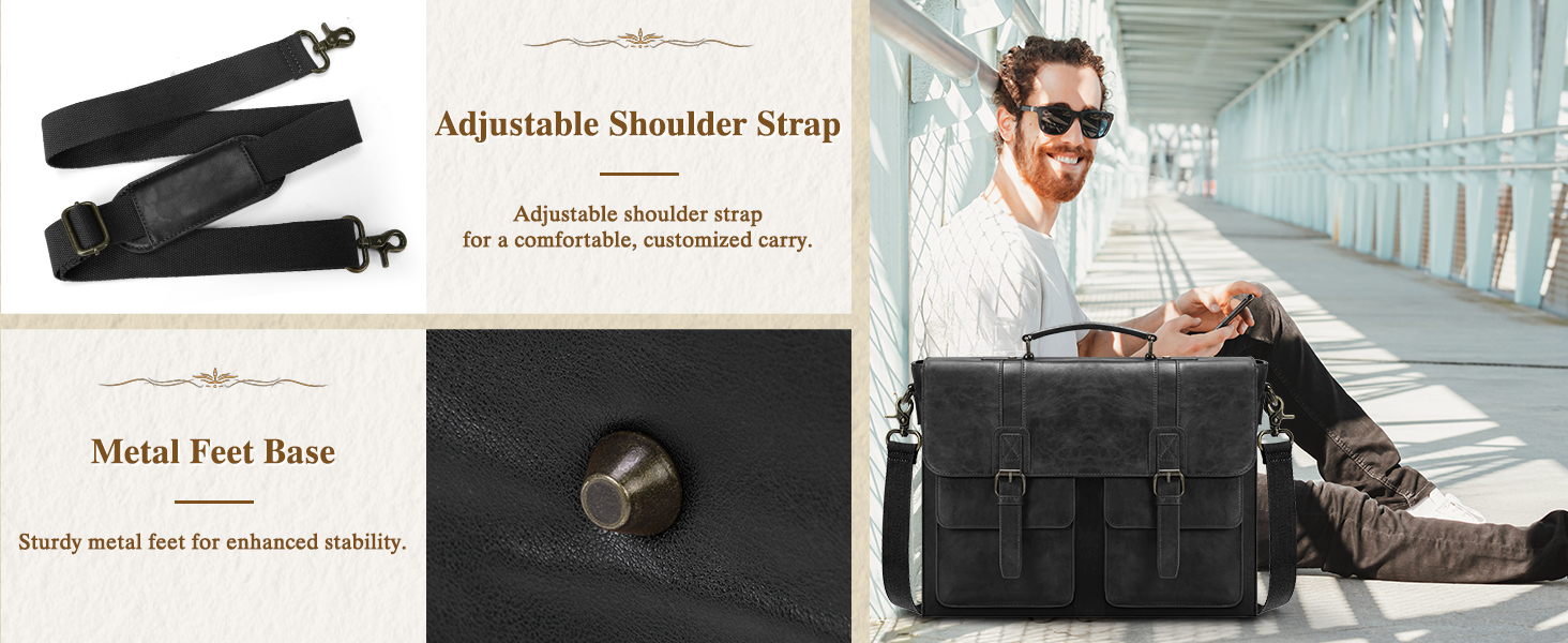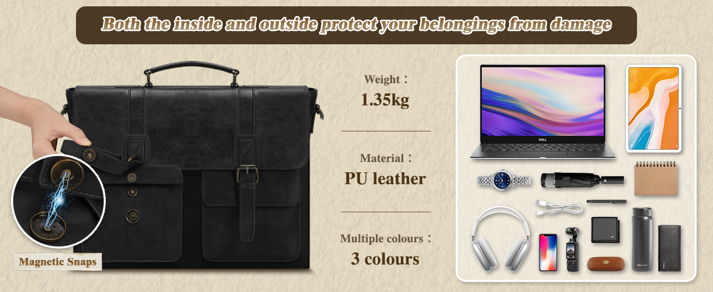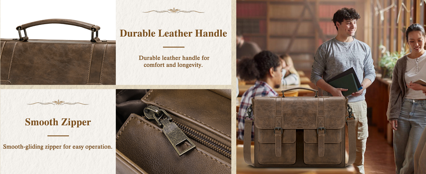 RAINSMORE Messenger Bag Briefcase for Men Waterproof PU Leather Bag 15.6 Inch Vintage Satchel Bag for Work Business Office College