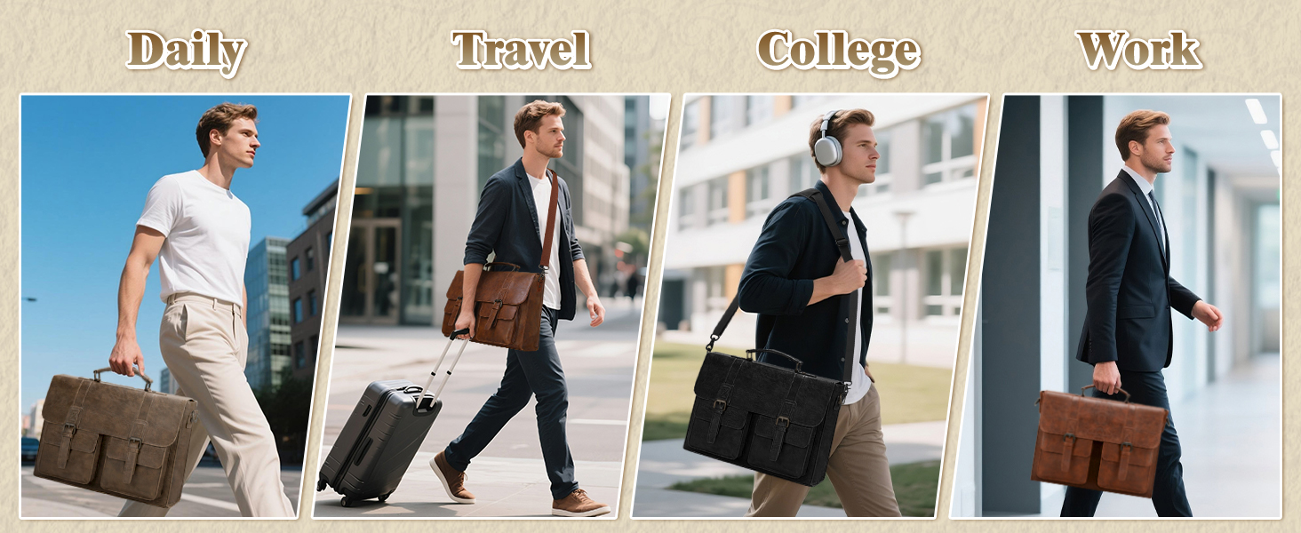 RAINSMORE Messenger Bag Briefcase for Men Waterproof PU