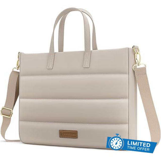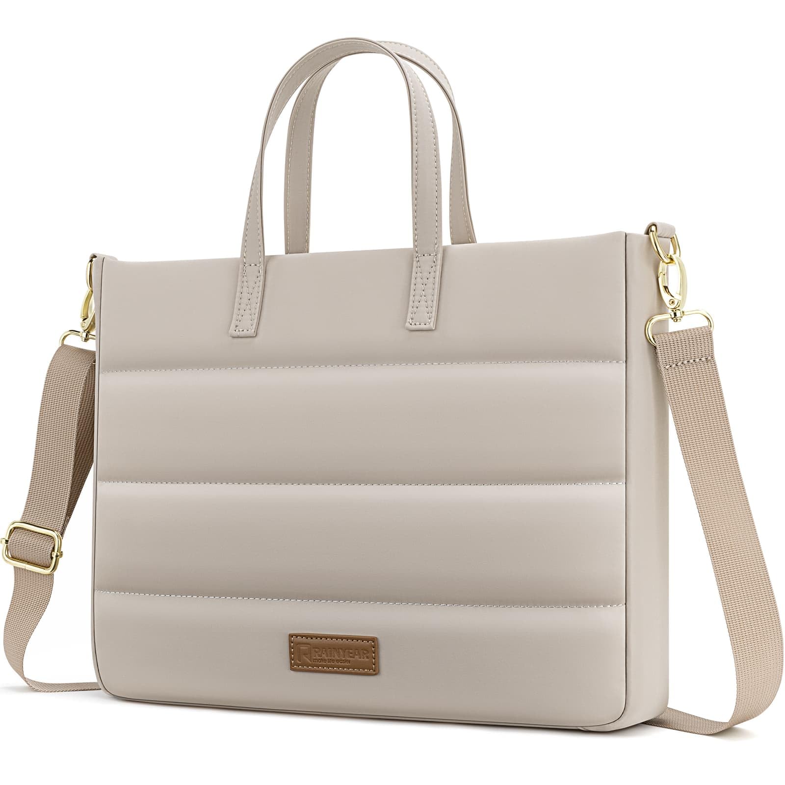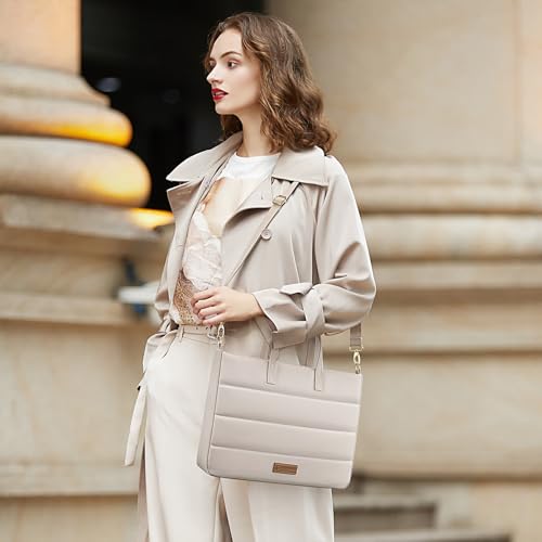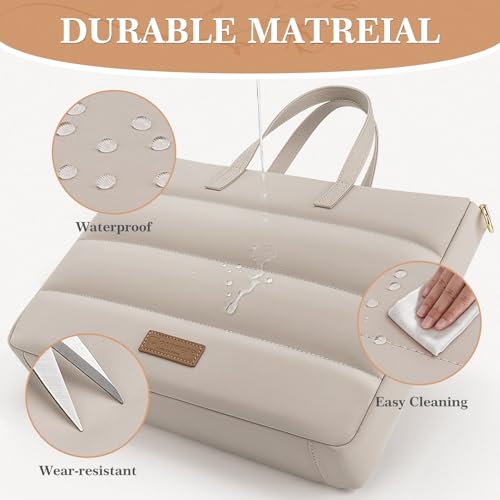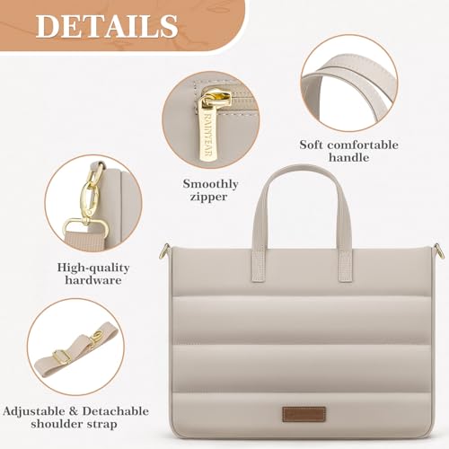 RAINYEAR 13-14 Inch Ladies Laptop Bag Briefcase for Macbook Notebook Chromebook, Elegant Case for Work Office Business University, Handbag with Laptop Compartment, Light Khaki