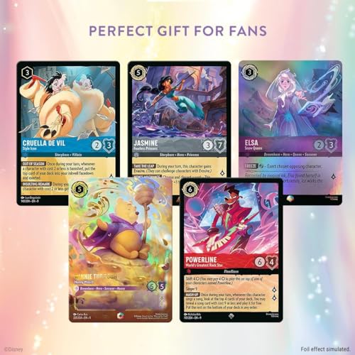 ADVENTURES AWAIT: Explore the enchanting world of Lorcana in this extraordinary trading card game. Discover stunning original artwork that beautifully captures the essence of beloved Disney characters, providing an immersive experience like no other.