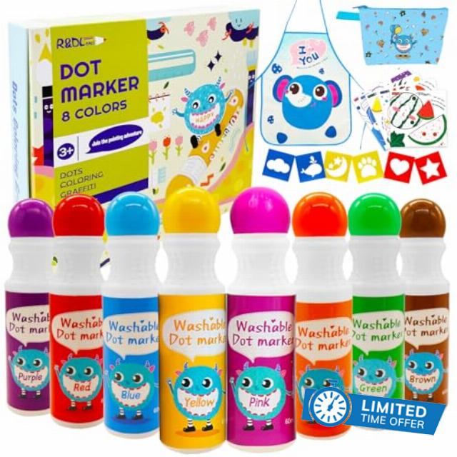 R&DLanci Washable Dot Markers for Toddlers, 8 Colours Dot