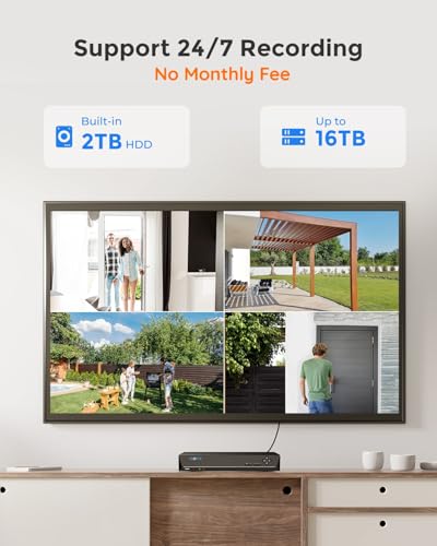 24/7 RECORDING CEASELESS PROTECTION: This 4K PoE video surveillance kit supports 24/7 continuous recording of all cameras. You will have an all-day video without missing a beat. The video will be stored in the pre-installed 2TB HDD. You can even install an external hard drive (up to 8TB) to expand storage space, a storage capacity of up to 16TB.