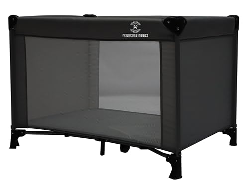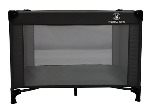 REQUISITE NEEDS Travel Cot, Padded Mattress, Birth to 15kg, Compact Folding Design with Travel Bag (Black)