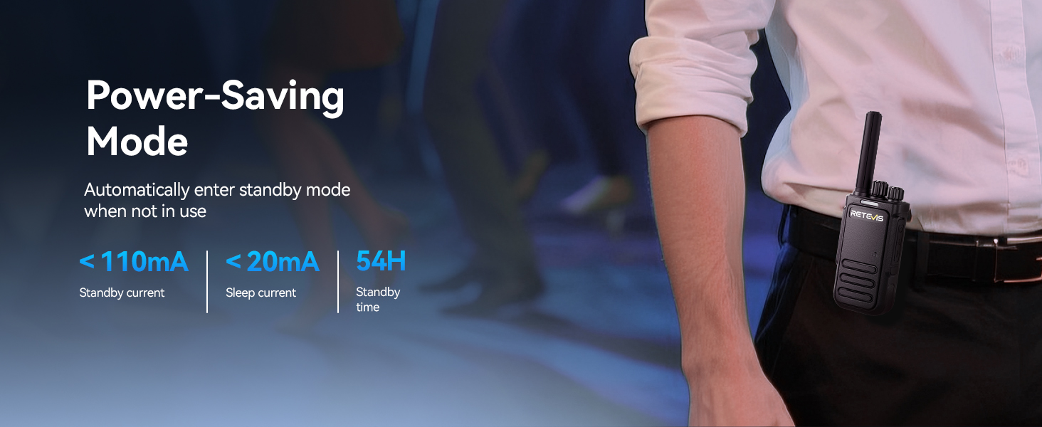 - Save energey; during long shifts; power-saving mode conserves battery life; keeping business walkie talkies reliable through long hours; whether taking orders; managing crowds; or coordinating with kitchen staff; ensures radios stay connected