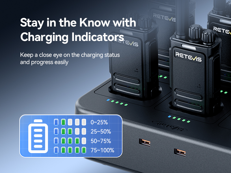 Charge 6 radios simultaneously. Suitable for venues with limited space—no clutter, no downtime. Ready for the next shift efficiently.