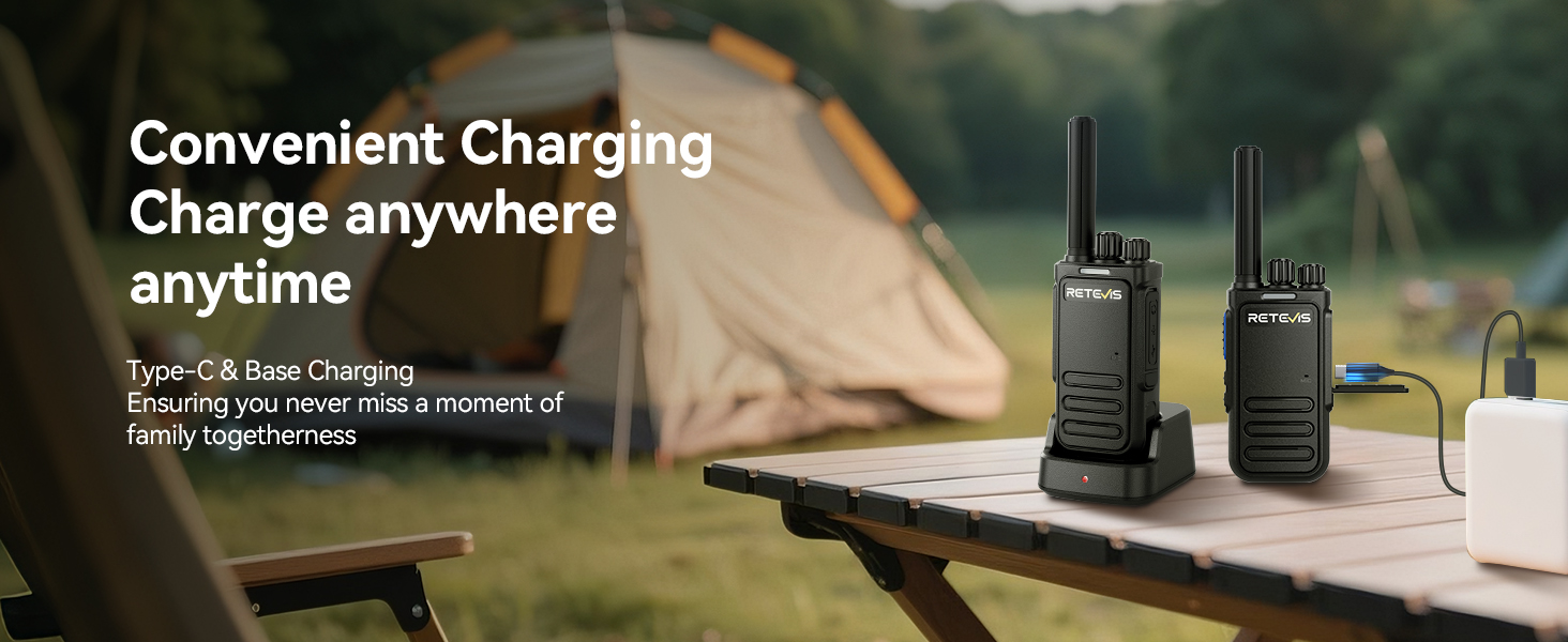 - Easy to charge; charge the walkie talkies for adults via Type-C cable on the go or charge with the base charger; suitable for light industry crews needing quick recharges between shifts; at KTVs; Type-C cable keeps radios charged for marathon sessions