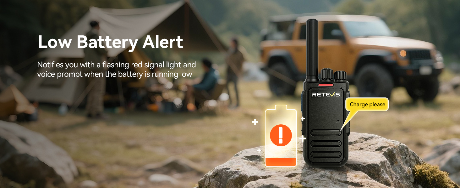 - Low-battery alert; the function of walkie talkie with flashing lights and voice prompts ensures you’re never caught off guard; whether hiking; biking; or exploring; the alert warns you early to recharge or swap batteries