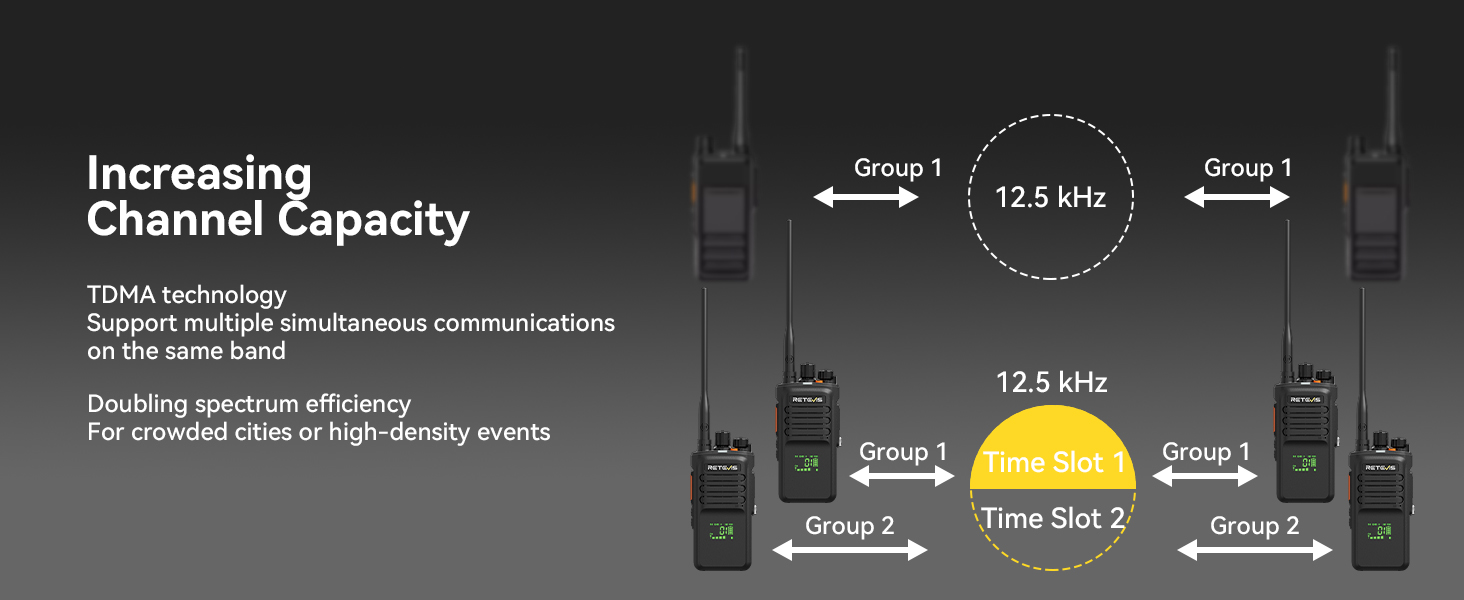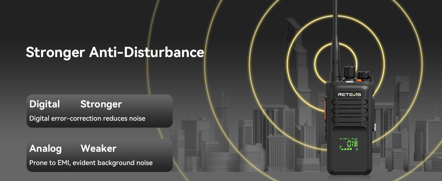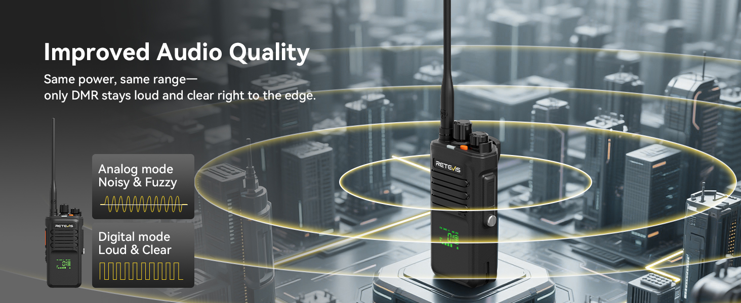 - Pro-grade DMR tech; digital 2 way radio with advanced DSP technology filters out background noise; ensuring that your instructions and alerts are received with clarity; improving the accuracy of understanding