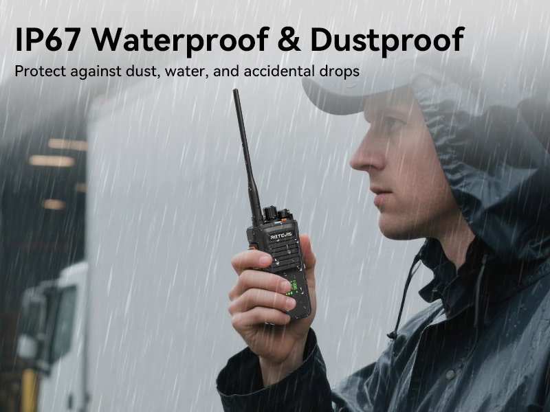- IP67 Weatherproof; conquer the elements with the handheld radio; which protects against dust ingress and immersion in water up to 1 meter deep for 30 minutes; whether you're working in wet or dust conditions; your communication remains reliable