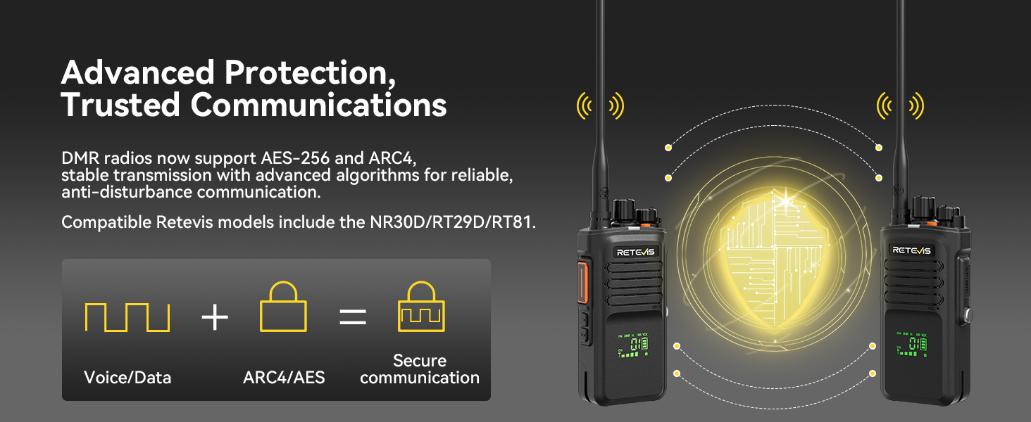 - ARC4+AES256 protection; ensure the security of critical communications with the professional walkie talkie's secure capabilities; the system's resistance to band disturbance ensures that your info is transmitted securely; compatible with Motorola DM4600、XPR5000