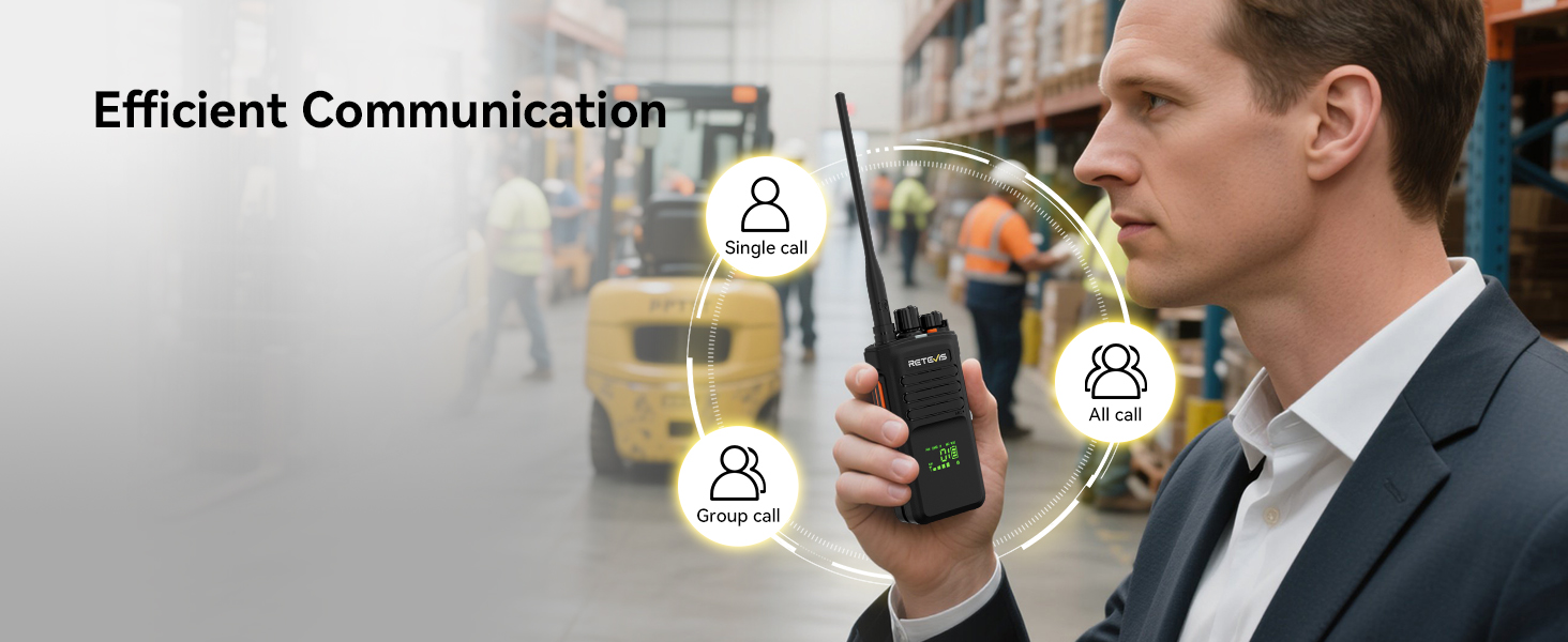 - 3 Calling modes; effortlessly manage communications within your team with digital 2 way radio; initiate single calls for 1-to-1 discussions; group calls for team coordination; or all calls for company-wide announcements