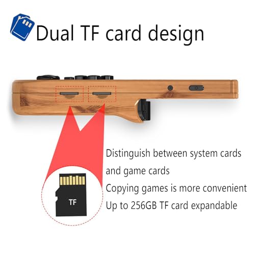 - DUAL TF CARD DESIGN:Distinguishing between system cards and game cards makes it easier to copy games, with a maximum expandable capacity of 256GB card. Two high-quality stereo speakers and a built-in vibration motor, let you enjoy the immersive gaming experience.