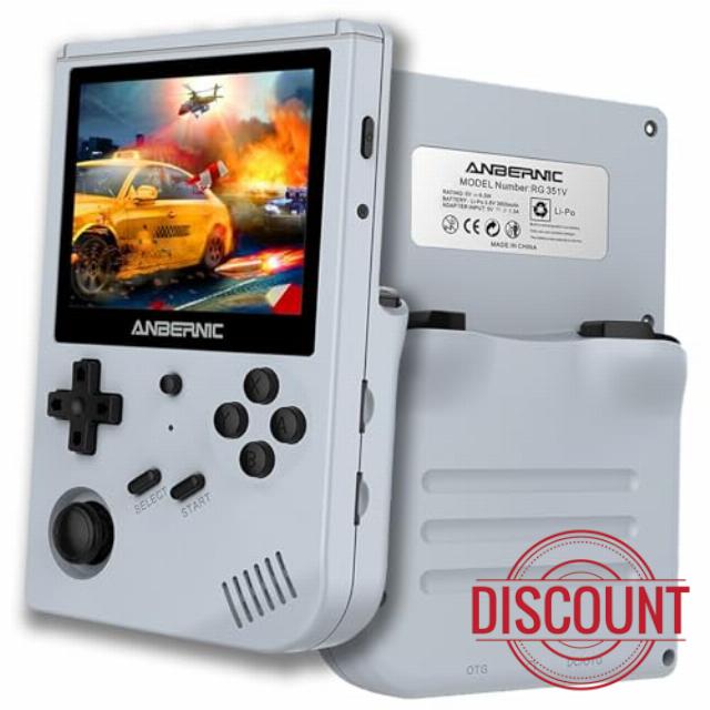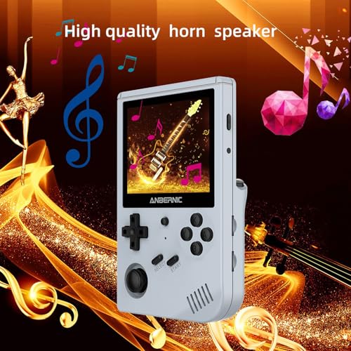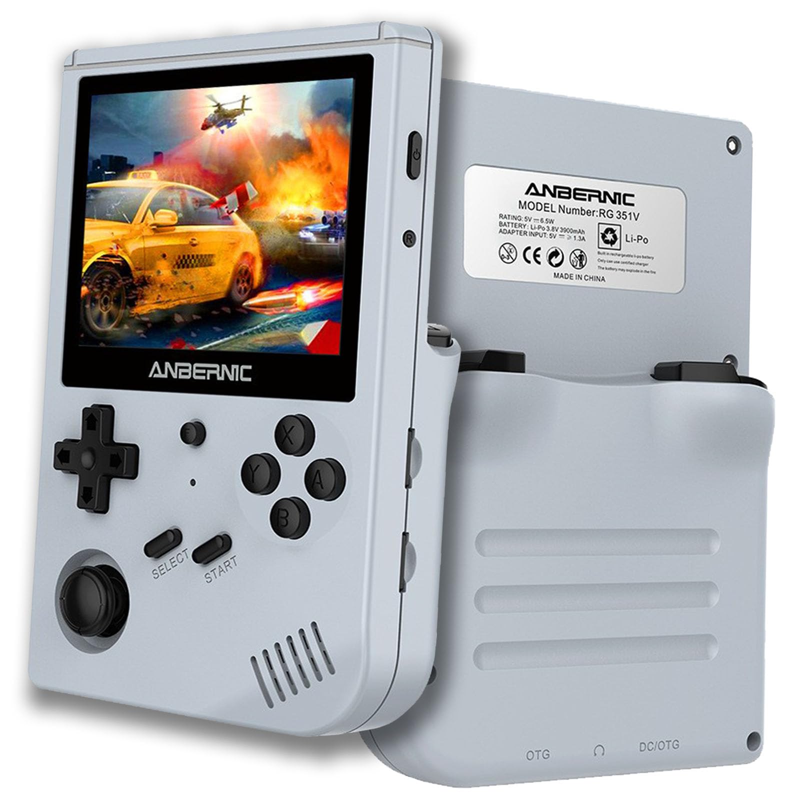 RG351V Handheld Game Console, 3.5 Inch IPS Screen Portable Game Console, Plug and Play Double TF Extend Video Game Supports-Grey||128G