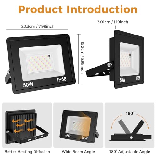 - 【Convenient Remote Control】Easily adjust your LED floodlight settings with a remote, including 4 lighting mode switch, brightness ajustment, and color selection. Enhance your outdoor lighting with this user-friendly, energy-efficient solution for customized illumination and convenience
